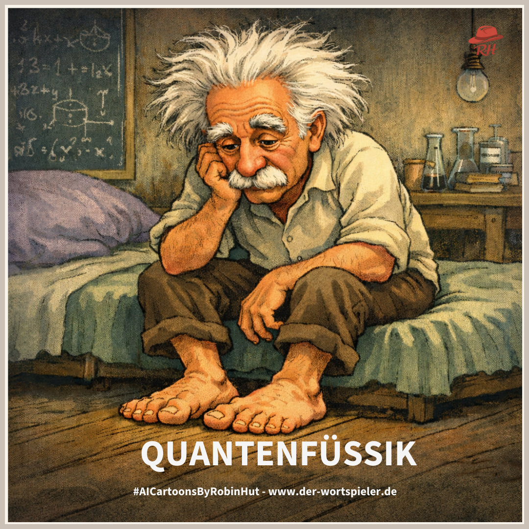 So entstehen die AI-Cartoons by Robin Hut: die Idee eines Wortspiels verwandelt sich in die Formulierung einer Aufgabe. Diese wird so lange verändert, bis die AI den passenden Cartoon dazu liefert.